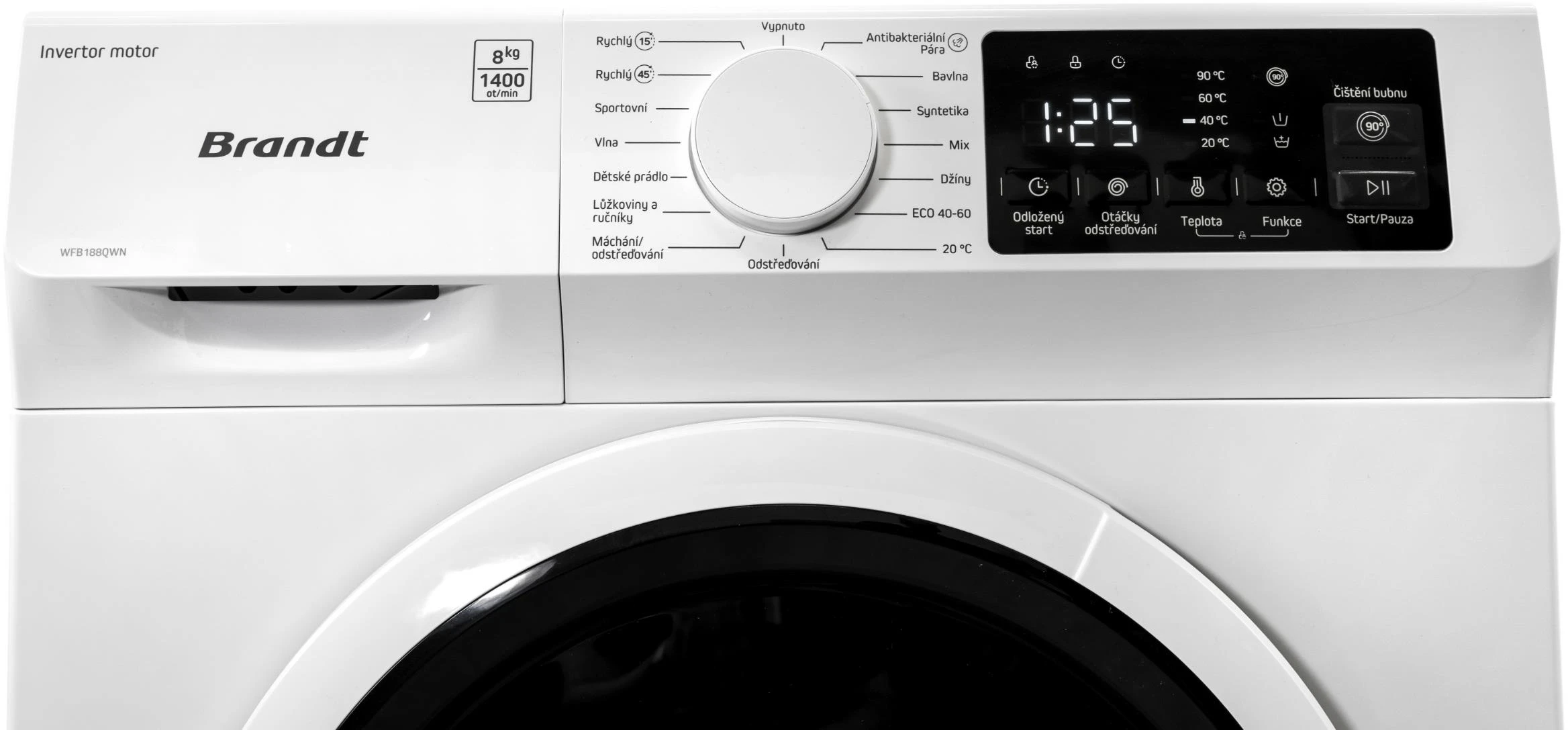 Uživatelský komfort zvyšuje přehledný LCD displej s bílým podsvícením a dotykové ovládání s otočným voličem, umožňující snadný výběr z 15 různých programů. K dispozici jsou rychlé programy 45 a 15 minut, speciální antibakteriální program a mnoho dalších. Pračka také nabízí možnost odložení startu až o 24 hodin a užitečné funkce jako předpírka, přidané máchání a čištění bubnu. Antibakteriální parní program, kombinující prací cyklus s párou, proniká hluboko do vláken prádla, eliminuje zápach a chrání zdraví.
